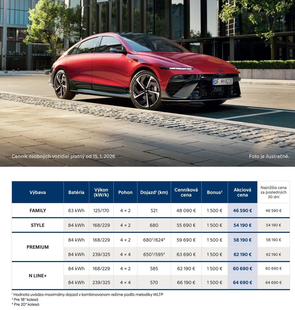 Kompletný cenník vrátane výbavy nájdete tu: IONIQ 6 2026 CENNÍK
