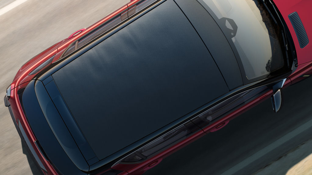 Čierna otvárateľná plátenná strecha je výrazným dizajnovým prvkom, ktorý dodáva vozidlu nový vzhľad. Strešné nosníky boli odstránené, aby sa maximalizoval otvor, a anténa je teraz integrovaná do zadného okna. Vozidlo bolo navrhnuté s touto strechou od začiatku, takže nemá zásadný vplyv na kľúčové parametre. Napríklad priestor nad hlavou zostáva prakticky nezmenený: 906 mm vpredu a 813 mm vzadu, oproti 886 mm a 853 mm pri klasickej streche.