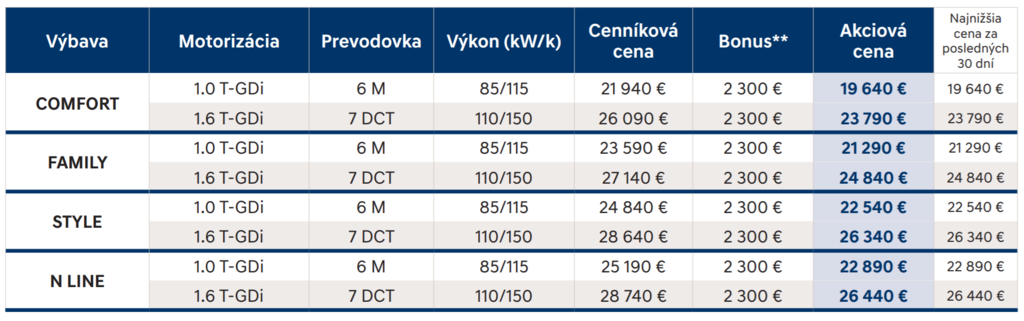 Kompletný cenník nájdete tu: Hyundai i30 2026 Kombi CENNÍK