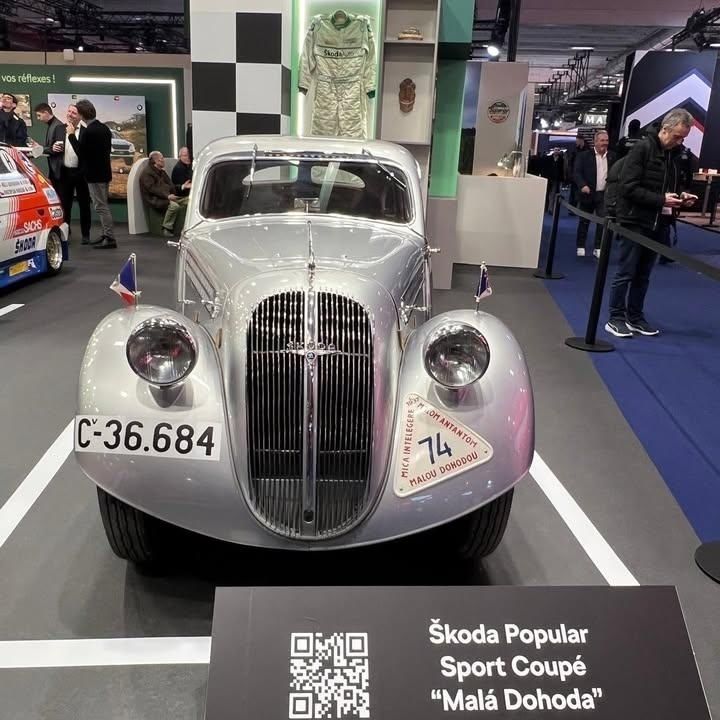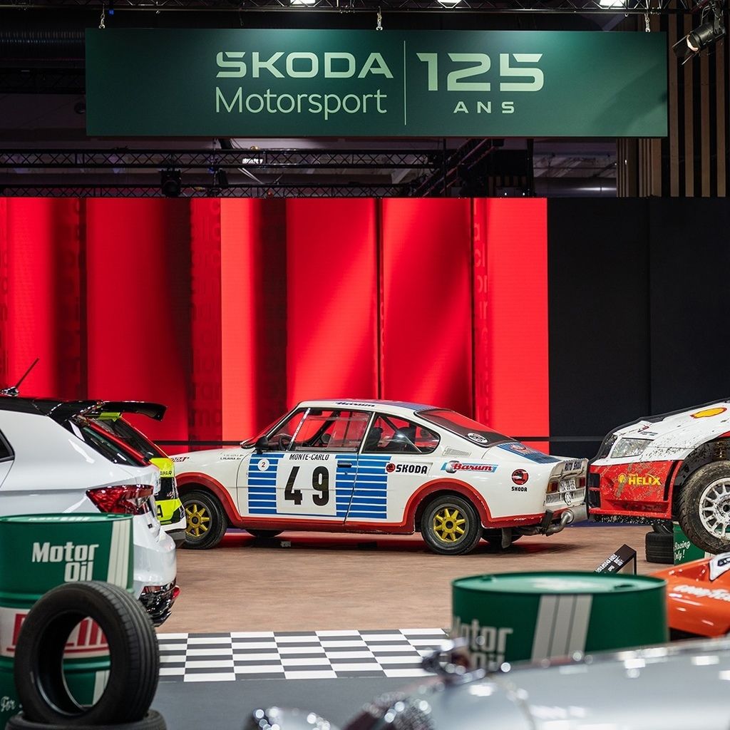 Návštevníci výstaviska Paris Expo Porte de Versailles obdivovali okrem dvojstopových vozidiel aj motocykel Laurin & Klement BZ z roku 1903, ktorým sa značka vracia k samotným koreňom mladoboleslavského motoristického športu. Kolekciu rozprestierajúcu sa v hale 7 na ploche vyše 300 m2 tvorilo sedem historických automobilov, ktoré zanechali výraznú stopu v motoristickom športe a reprezentovali jeho kľúčové etapy. Boli to vozidlá Škoda Popular Sport Coupé „Malá Dohoda“ (1937), Škoda 1100 OHC (1957), Škoda 130 RS (1976), Škoda Favorit 136 L/H (1991), Škoda Octavia RS (2002), Škoda Fabia WRC (2007) v nevšednom poňatí anatomického rezu a showcar Škoda Fabia R5 Combi z roku 2015. Historické automobily v expozícii dopĺňali dve moderné vozidlá – koncepčná Škoda Enyaq RS Race a nedávno predstavená Škoda Fabia 130.