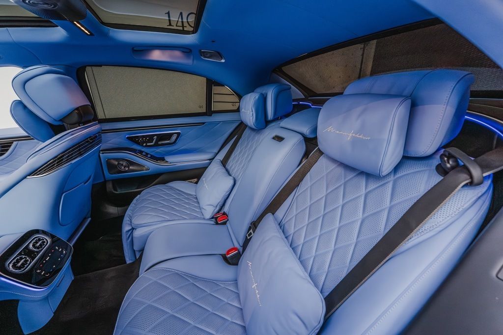 Veľmi pekné bolo aj prevedenie interiéru manufaktur. S-trieda opäť ponúka možnosť individualizovať si exteriér aj interiér auta rôznymi spôsobmi. Na výber je v podstate až 100 exteriérových farieb a 150 možností materiálových a farebných kombinácií interiéru. Vystavené auto malo krásny bledomodry interiér obšitý bledou kožou a alcantarou, proste absolútna topka, vyslovený cukrík. Dnes už nestačí mať len vyhrievané sedačky a vyhrievaný volant a lakťové opierky preto S-trieda ponúkne aj vyhrievanie predných bezpečnostných pásov.